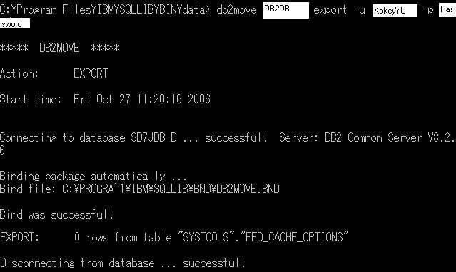db2move databasename export -u username -p password