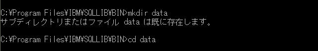 第一步:打开DB2的命令行工具,在DB2安装目录的BIN文件夹下新建一个文件夹data,并且进入该目录。